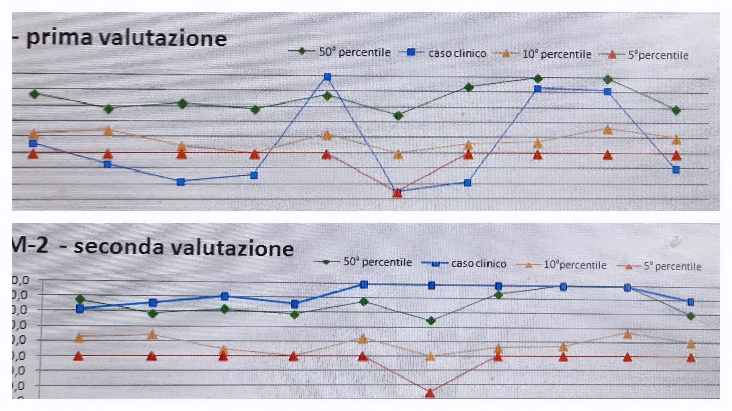 Ma allora perché uso i grafici? Mi servo di loro solo ed esclusivamente per rimarcare un miglioramento. Per evidenziare nella fattispecie come un bambino arrivato in terapia con diverse e serie difficoltà sia riuscito in 6 mesi di trattamento ad innalzare la sua curva di molto,moltissimo. Per dimostrare al bambino che ce la può fare e per incoraggiare la famiglia che spesso tende a dimenticare da dove si parte e a rimanere focalizzata solo su quello che ancora non funziona. Sono una gran iniezione di fiducia,autostima e forza!